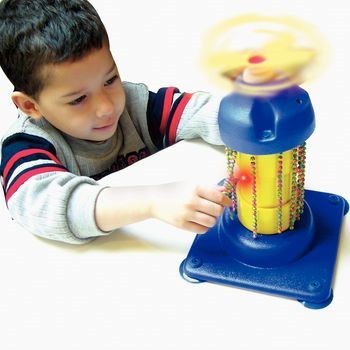 Basta con pulsar las fingerholds o tirar de las cadenas de cuentas y los rugidos de la hélice y se cayó en la acción, mientras que su vibrante luz de cohetes y reproduce música.