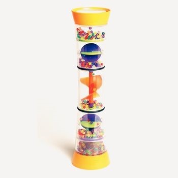 Cuando se activa, se voltea, se agita o se rola, una multitud de cascada de cuentas de colores a través de los tubos crea sonidos agradables. Para edades de 3 años en adelante