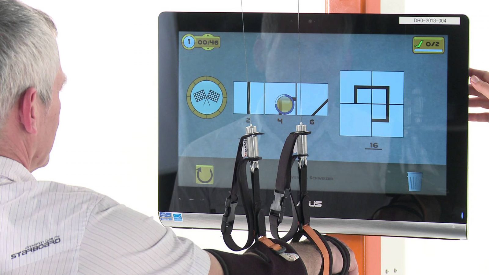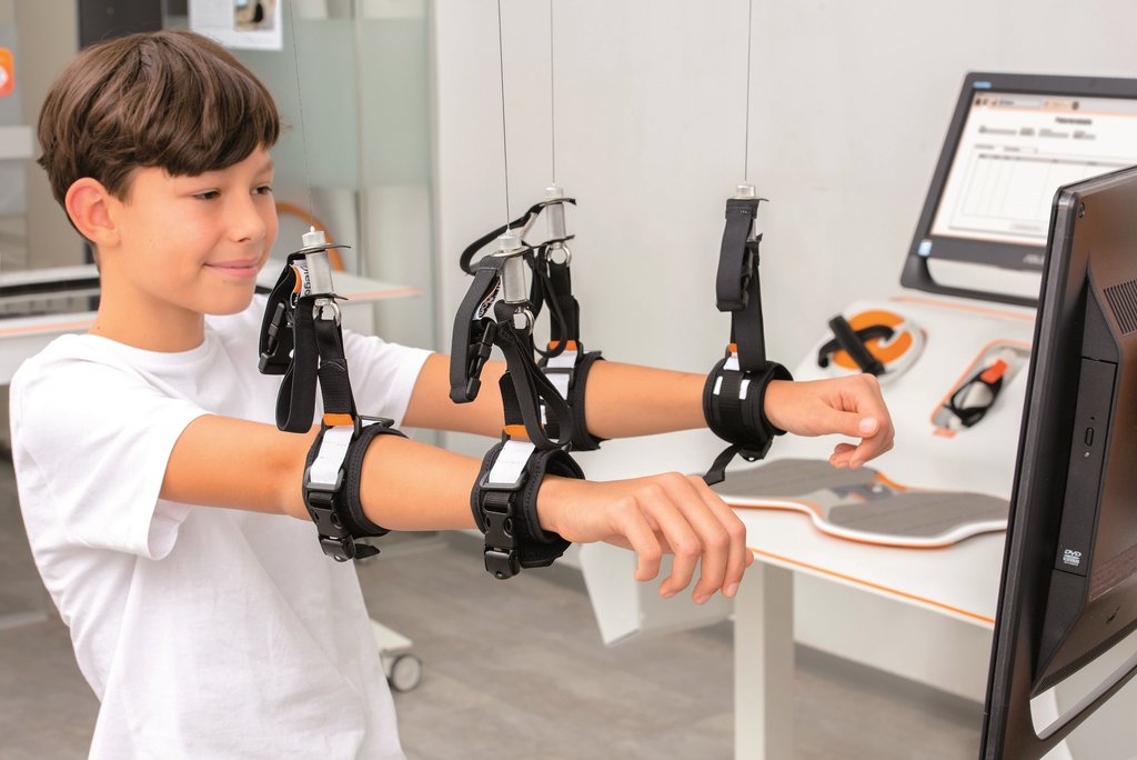 El movimiento directo del brazo se representa en terapias de realidad virtual. Es una sensación increíble cuando puede recuperar funciones perdidas con la ayuda de Diego®. La capacitación divertida con base en módulos de terapia de una, dos y tres dimensiones permite una rehabilitación motivante para pacientes con deterioro motor, sensorial y también cognitivo.